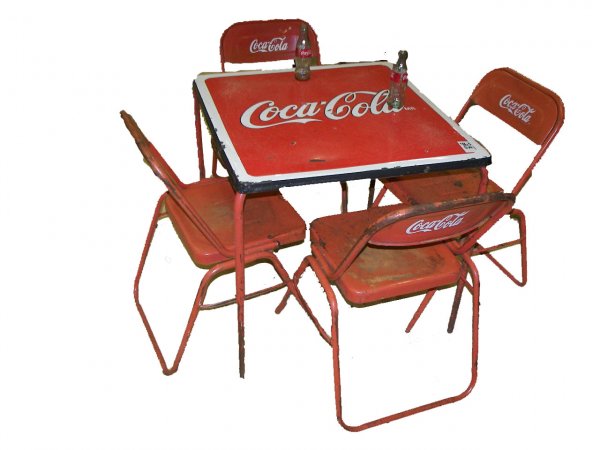 Coca Cola Table And Chairs Set / Coca Cola Table Chair Set Nov 09 2013 Meissner S Auction Service In Ny : Our customer service and quality of 1950's furniture is the best around.. This bistro table set is in great condition! At heffrons we can assist you with all of your coca cola stools and furniture needs. Give us a call today or send us an email to get started! Our retro furniture takes things to the next level with our coca cola collection. A nightstand has a face with four windows framed in white and sides that are made from crates bearing the coca cola logo.